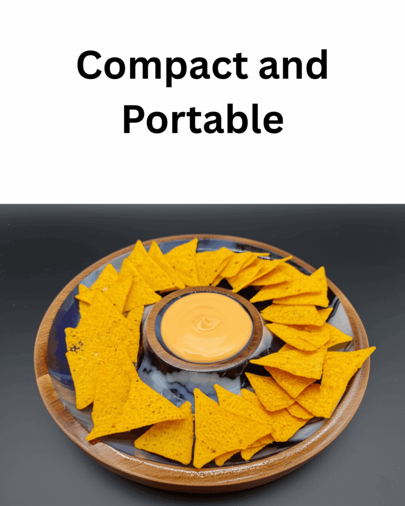 Beyond chips, the larger section can hold snacks like crackers, pretzels, or small sandwiches, while the dip compartment accommodates sauces, spreads, or even small desserts like chocolate or caramel, expanding its utility for different occasions.